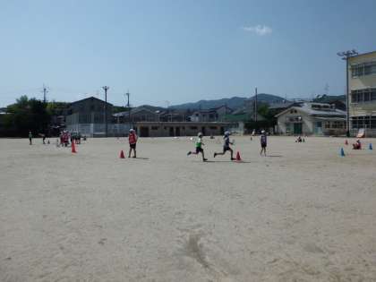 4年生が、チーム対抗のリレーをしていました。