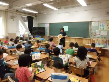 1年生は、まなび支援の先生に読み聞かせをしてもらっていました。