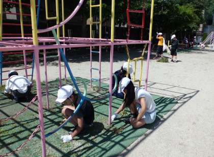 暑い日差しの下ですが,たくさんの草を引いてくれました。学校の中が,とてもすっきりしました。