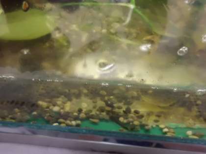 朝よく見ると、たくさんのオタマジャクシがいます。