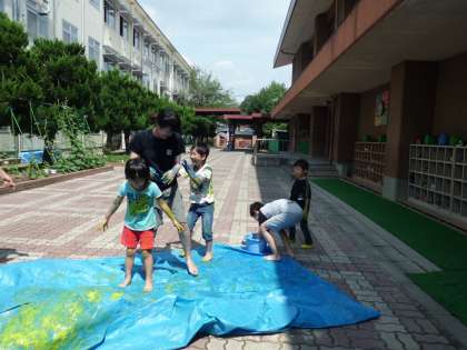 7月2日(木)に、よつば学級が中庭で大盛り上がり!
