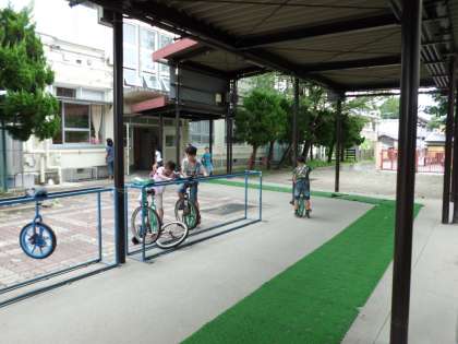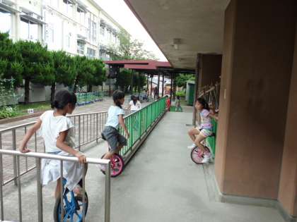 低学年の子ども達がいつも中庭で一輪車に乗っています。