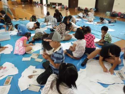 開会式のあとは、水着に着替えて、水鉄砲大会と体育館の中で