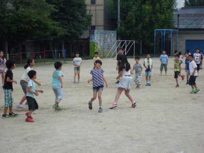 全員片付き、運動場をドッジボールをする子や友達とおしゃべり