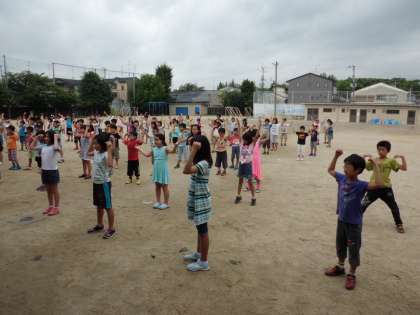 一汗かいて、朝の集いです。ラジオ体操をみんな元気にやりました。
