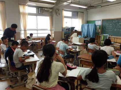 5年生はたくさんの子ども達が静かに学習していました。