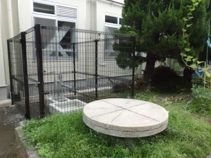 中庭半分にマンホールの蓋も設置されてきました。