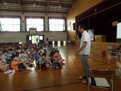 校長先生のお話のあと、地域の方からもお話をしていただきました。