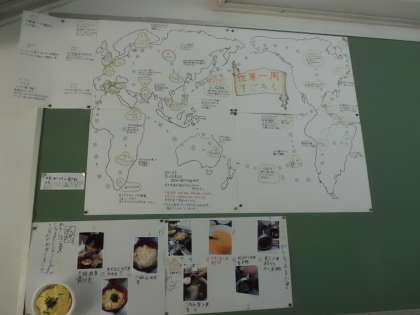 大きな紙に世界地図が描かれていました。