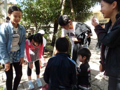 昼休みの時間に、各学年ごとうさぎの飼育小屋前に集合