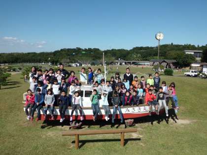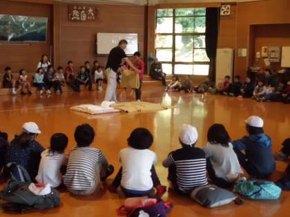 営火場で柏野小を迎え、入所式をしました。
