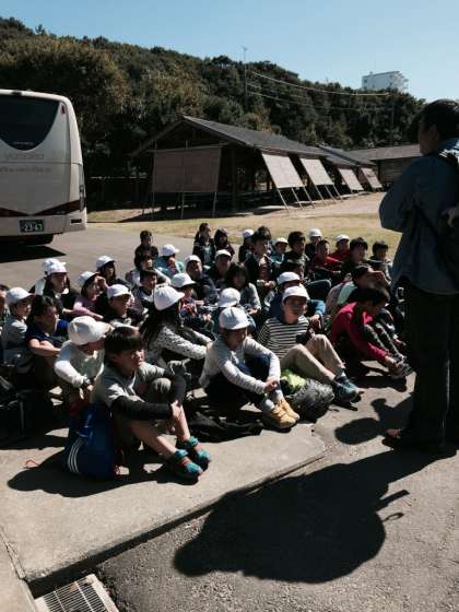 予定より少し遅れましたが、12時に岬の家につきました。あっという間におにぎりを食べてしまいました。さいこのてんきです!いよいよ活動スタートです!