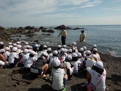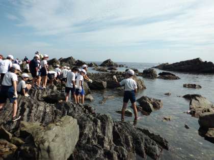 その後、みんなで岩場を進み、海の生き物さがしです。