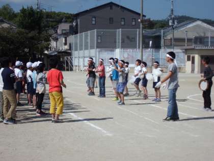 中間休みや昼休みには、運動場や体育館で応援の全体練習