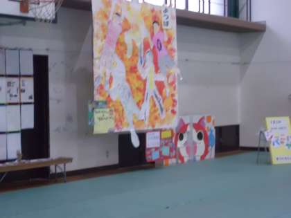 体育館では、翔鸞幼稚園や小学校の子ども達の作品が並び、