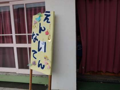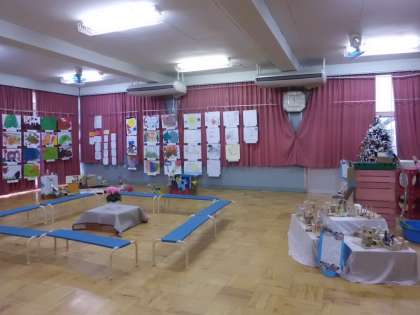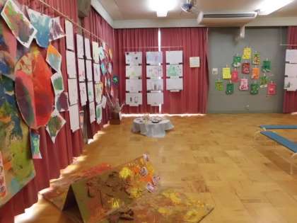 小学校のすぐ隣の翔鸞幼稚園で作品展が開かれています。