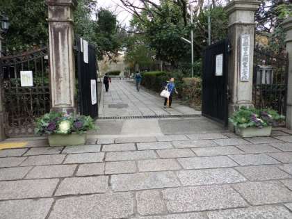 12月14日(月)、正門に大きな素晴らしい葉牡丹の寄せ植えの鉢