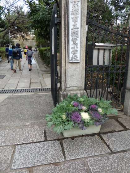 正門にすばらしい葉牡丹がみんなを出迎えています!