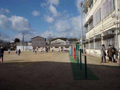 運動場でじっと参観されている保護者の方もとても寒そう