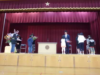 みんなで校歌を歌ってから、離任される先生方のお話を聞きました。児童代表の5年生は,一人一人の先生にお別れの言葉を話してくれました。