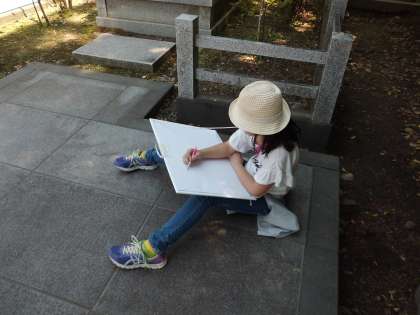 日差しの強い中,建物をしっかりと見て,構図を考えながら,アイデアデッサンができました。この後,学校に戻って仕上げていきます。