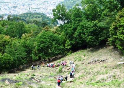 お弁当を食べたら,大文字山を楽しみました。座って景色を眺めていたり,草むらを歩き回ったり,大の字のてっぺんまで行ったり,それぞれに過ごしました。