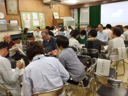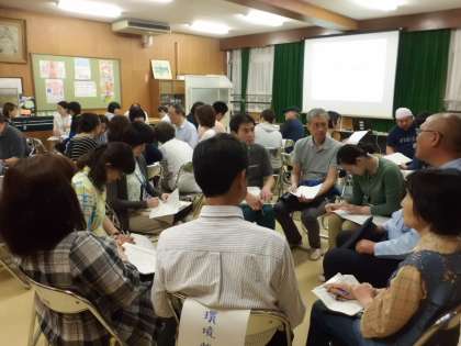 5月20日(金)午後7時から会議室で今年度最初の学校運営協議会総会が行われました。顧問・理事・企画推進委員の多くの方々が参加してくださり,学びを拓く委員会・心と体を育む委員会・安らぎを守る委員会の3つの中の7部会に分かれて今年度の取組について話し合いました。