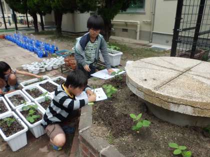 「茎に毛が生えてるけど,子葉の下は生えてない。」「葉の大きさが違う。」など,たくさんの発見がありました。