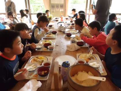 今回初めての食堂でのバイキングです。それぞれ好きなものをおなかいっぱい食べました。大満足!!