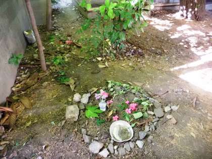 次の日の朝,チョコちゃんのお墓には,たくさんのお花が供えられていました。