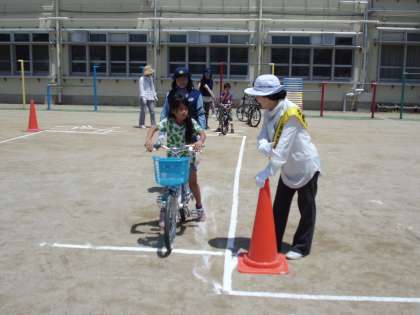 6月10日(金)3時間目1年生の自転車教室が実施されました。小学校へ入って初めての自転車教室です。