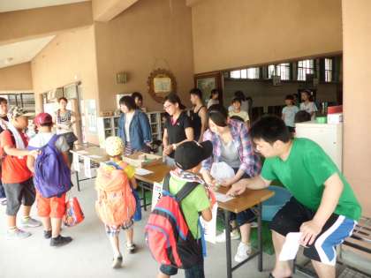 昼すぎには,大きな荷物を抱えた子ども達が続々とやって来ました。いよいよ,サマーキャンフ゜の始まりです。
