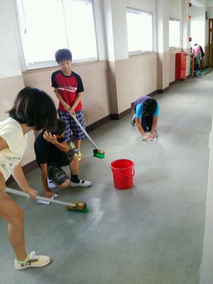 廊下をゴシゴシ,階段をキュッキュッ。