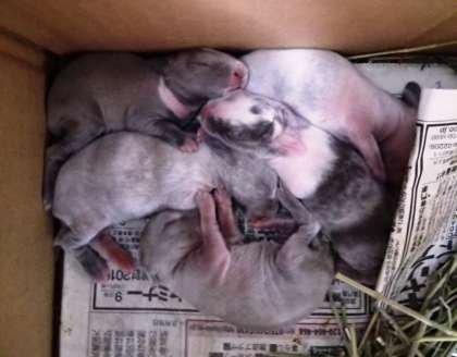 上の写真は8月25日,下の写真は28日です。すっかりウサギさんらしくなりました。それぞれの模様がずいぶんはっきりとして,耳も長くなってきました。