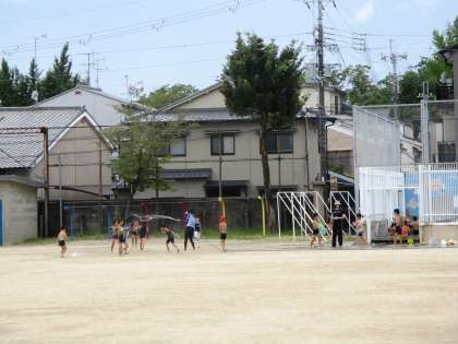 1年生のみんなは,運動場で水遊びを楽しみました。9月とはいえ,まだまだ30度以上の日が続いています。水着に着替えて,水でっぽうを持って,みんなで水の掛け合いっこをして大はしゃぎです。先生も、ホースを持って一緒に遊びました。