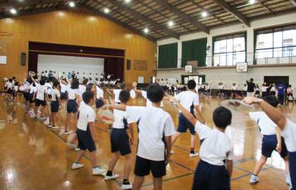 「てほへ〜てほへ〜てほとへてほへ」という掛け声をかけながら,団扇を持ってみんなで踊ります。本公演でも踊りますので,保護者の皆様,地域の皆様,どうぞ鑑賞にお越しください。