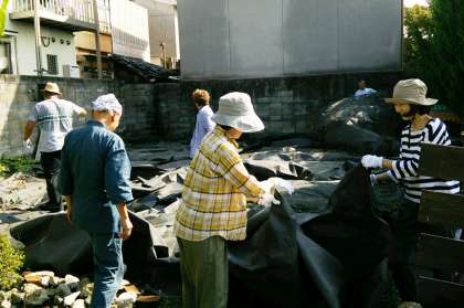 赤ちゃんが生まれて汚れが目立つようになったうさぎ小屋を,きれいにしていただきました。また,大きく育ってきた葉牡丹の苗を植え替えるため,畑を耕していただきました。