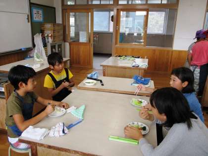 茹で上がった野菜をきれいに盛り付けて,「いただきます。」をしました。みんな,とても幸せそうな顔をして食べていました。
