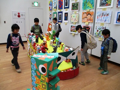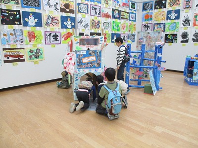 2月3日(金)に,よつば学級のみんなで「小さな巨匠展」の鑑賞に行きました。合同作品で遊んだり,お友だちの絵を見たりして,展示会場でたっぷりと楽しみました。また,午後からは,広い御所でいっぱいあそびました。