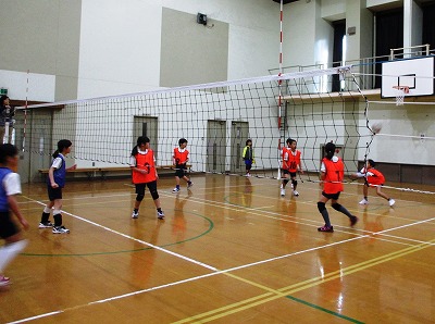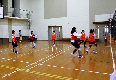 4・5年生チームは,男女混合で1チームが出場しました。今年初めてバレーを始めた4年生も,5年生と一緒に試合を頑張りました。なかなかサーブが入らなかったり,レシーブが思うようなところに打てなかったりしたこともありましたが,なんとかパスをつなげようと,みんなで一生懸命ボールを追いかけていました。