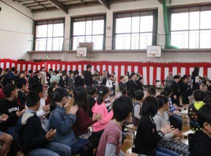 入学式では,2年生と6年生のお兄さんお姉さんが拍手で迎えてくれる中,上手に2列に並んで入場することができました。2年生のみんなは,お迎えの言葉の中で,勉強のことや給食のこと,遊びのことなど,学校のことをたくさん教えてくれました。6年生のみんなは,始業式の後,入学式の準備や片付けをしっかりとしてくれました。学校のみんなが楽しみに待っていた1年生です。