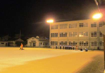 学校の運動場で,消防団の方が訓練をしておられました。お仕事を終えた後,夜に集まって遅くまで訓練をしておられました。地域で火災が起きた時には駆けつけて下さる,頼もしい皆さんです。