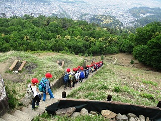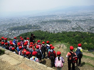 5月12日(金),3年生は大文字山へ出かけました。前日までは降水確率50%とお天気の心配をしていましたが,朝は青空が広がり,真夏のような暑さでした。