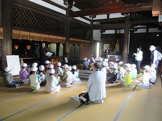 3回目の校区しらべに行ってきました。今回は,千本釈迦堂の本堂や宝物館に入らせていただき,ご住職の菊入様からたくさんのお話を聞かせていただきました。