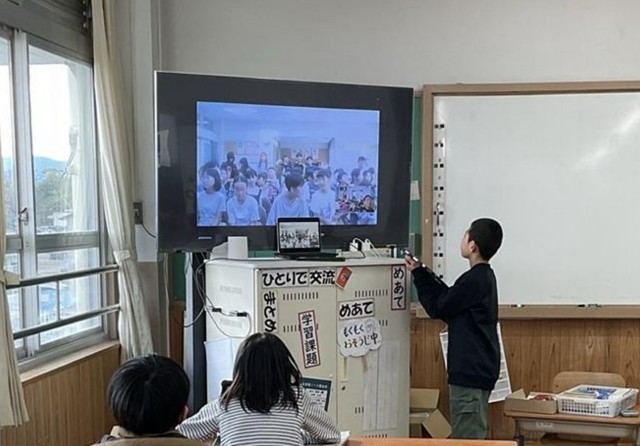 発表のあとは、両校の児童がお互いに質問し合う時間を設けました。好きなゲームや流行している遊びについての話題も多く、まったく違う好みがあったり、共通するブームが見つかったりと、大いに盛り上がりました。
