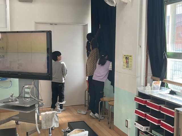 まず初めに理科室の空気の温まり方を調べ、その後実験器具を使って温まり方の実験をしました。