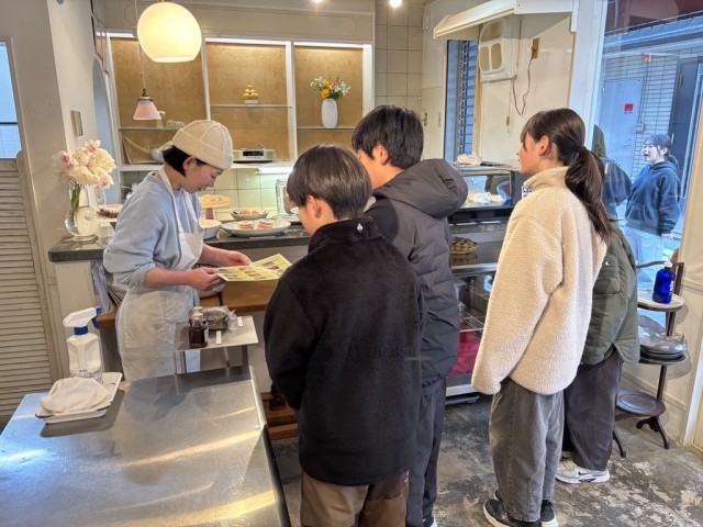 5年生は、総合的な学習の時間に「翔鸞の魅力を伝えるリーフレット」づくりに取り組んでいます。本日は、インタビューでお世話になったお店や神社を一軒ずつ訪ね、完成したリーフレットを手に報告に出かけました。児童は、緊張しながらも感謝の言葉をしっかりと伝え、「見てください!」と自分たちのオリジナルリーフレットを嬉しそうに紹介していました。地域の方々から温かい言葉をいただき、達成感に満ちた表情を浮かべていました。