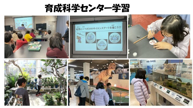 今日は、京都市青少年科学センターに行ってきました。プラネタリウム学習では、星と星座についてのお話しを聞きました。普段見られない星まできれいに見えて喜んでいました。その後は、4年生以上は実験棟で科学工作を行いました。今年は、熱に反応するサーモインクを使って色の変わる絵を書いて楽しみました。展示学習では、生き物と触れ合ったり、空気砲のおもちゃで遊んだり、科学の不思議を感じる展示を体験することができました。