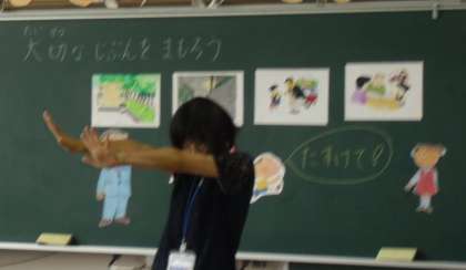 今日は。自分の心と体を守るのかを考え行動できるようすることをめあてに「大切な 自分を 守ろう」の学習をしました。知らない人から声をかけられたらどうすればいいのか考えさせ「知らない人にはついていかない。知らない人の車にはのらない。あぶないと思ったらおおきな声をだす。その場からすぐ逃げる。おとなに知らせる。」という「イカ・の・お・す・し」を確認しました。写真は2年生の学習の様子です。公園や夜の道などではどんなことに気をつけたらいいのか考えました。また,あぶない時やいやな時には「いや」とはっきり言えるように練習しました。