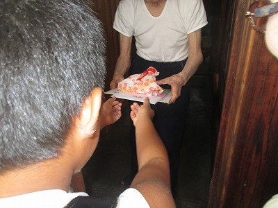 その色紙を民生委員の方にお世話になって,グループごとに一軒一軒配らせてもらい,おじいちゃんおばあちゃんの素敵な表情が見られました。
